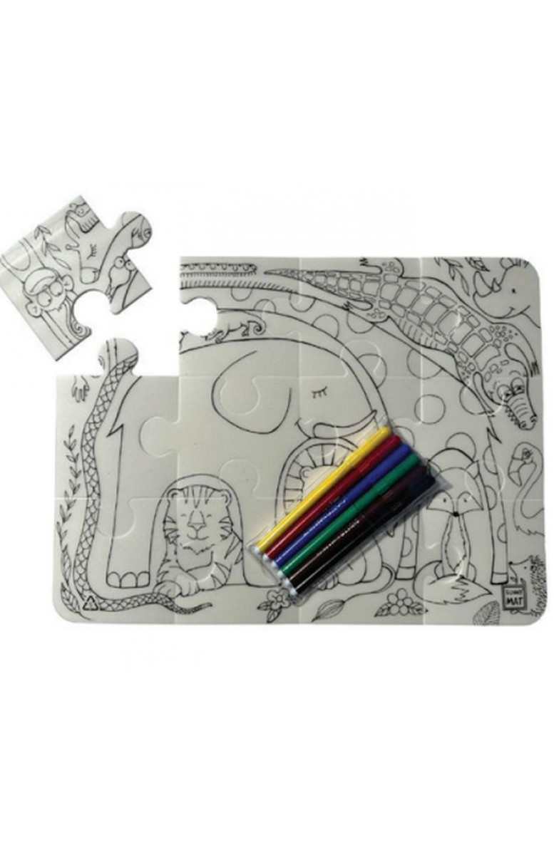 Yapboz parçalarını düz bir zemin üzerinde birleştirin. Ortaya çıkan resmi su bazlı keçeli kalemlerle istediğiniz renklere boyayın. İsterseniz desenlere eklemeler yapabilirsiniz! Herhangi bir parçayı kolayca silebilir, yıkayabilir veya Funny Mat Washable Puzzle'ın tamamını ıslak bir bezle silebilirsiniz. Yapbozu farklı şekillerde birçok kez boyayabilirsiniz.